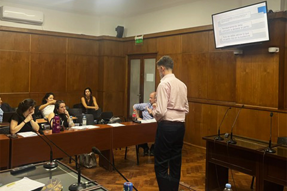 El experto en litigación oral Diego Calo Maiza durante la capacitación a agentes de los fueros Criminal y Correccional Federal de CABA y en lo Penal Económico. Foto: UNISA