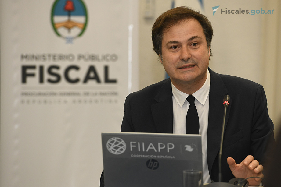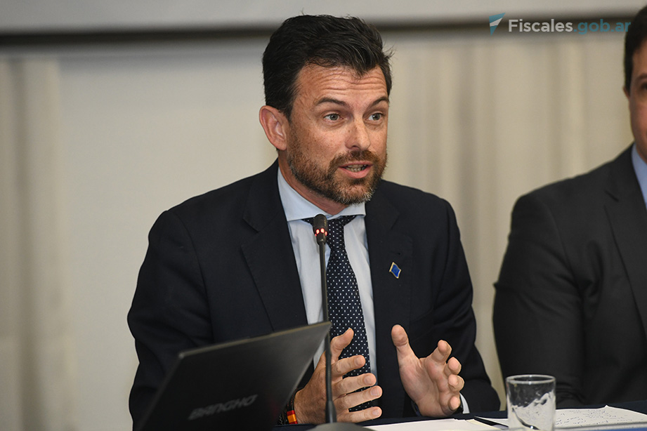 En el inicio de la jornada, las y los coordinadores de las tres redes de la Asociación Iberoamericana de Ministerios Públicos (AIAMP), el coordinador de la REDTRAM y cotitular de la PROTEX Marcelo Colombo; la coordinadora de la REG y titular de la UFEM, Mariela Labozzetta y el co-coordinador de la RFAI y auxiliar fiscal de PROCUNAR, Matías Álvarez, ofrecieron las palabras de bienvenida e hicieron una breve presentación del proyecto de trabajo. En este acto de apertura, también estuvieron presentes el jefe de la Sección Política y embajador adjunto de la Unión Europea en Argentina, Erán Nagan; el director del Programa COPOLAD FIIAPP, Borja Díaz Rivillas; y el técnico de proyecto de COPOLAD, Organización Internacional Ítalo-latinoamericana (IILA), Massimo Meccheri.