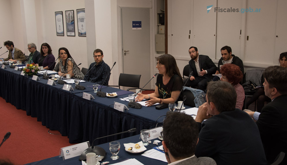 La jornada, que fue coordinada por la titular de la Dirección General de Derechos Humanos, Andrea Pochak, contó con la presencia del Procurador Fiscal ante la Corte Suprema de Justicia de la Nación, Víctor Abramovich, y de fiscales de los fueros Civil, Comercial, Contencioso Administrativo Federal, de la Seguridad Social y del Trabajo. También asistieron titulares y representantes de procuradurías, unidades fiscales, direcciones generales y programas especializados del MPF, como la PROCUVIN, la UFISES, la UFEM, la Dirección General de Acceso a la Justicia, la Dirección General de Políticas de Género, el Programa para la Protección de Usuarios y Consumidores y el Programa Especializados en Derechos del Trabajo; así como funcionarios del área de dictámenes de la Procuración General.