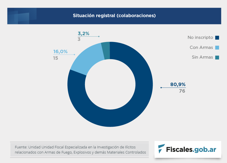 Sin embargo, tanto en el período bajo análisis como en el acumulado, los pedidos de colaboración que no hacen referencia al delito investigado representan más del 50%. Para los responsables de la unidad fiscal, esto dificulta extraer conclusiones certeras sobre el tipo de hechos sobre los que se analizaron armas de fuego y personas; en especial, en lo que respecta a su situación registral frente a la ANMAC.