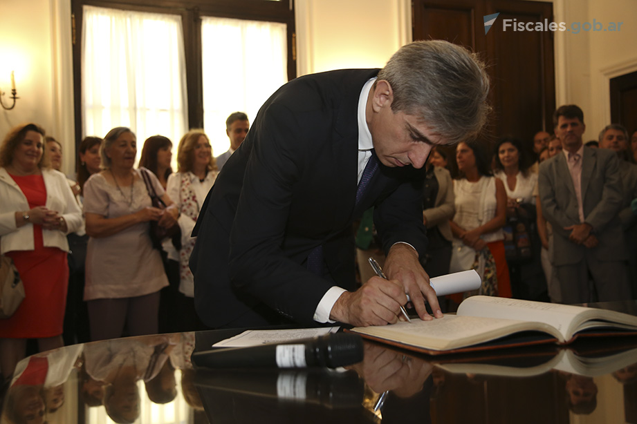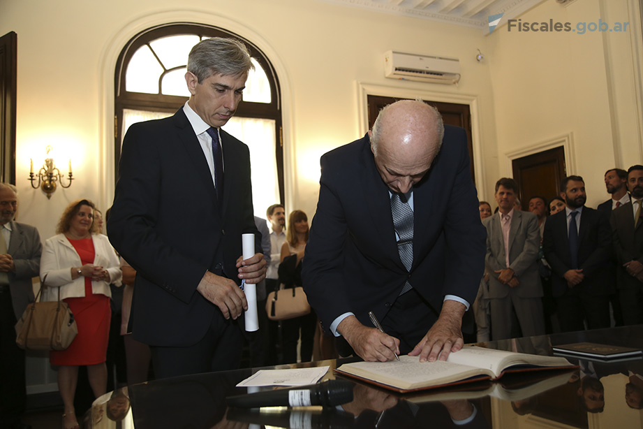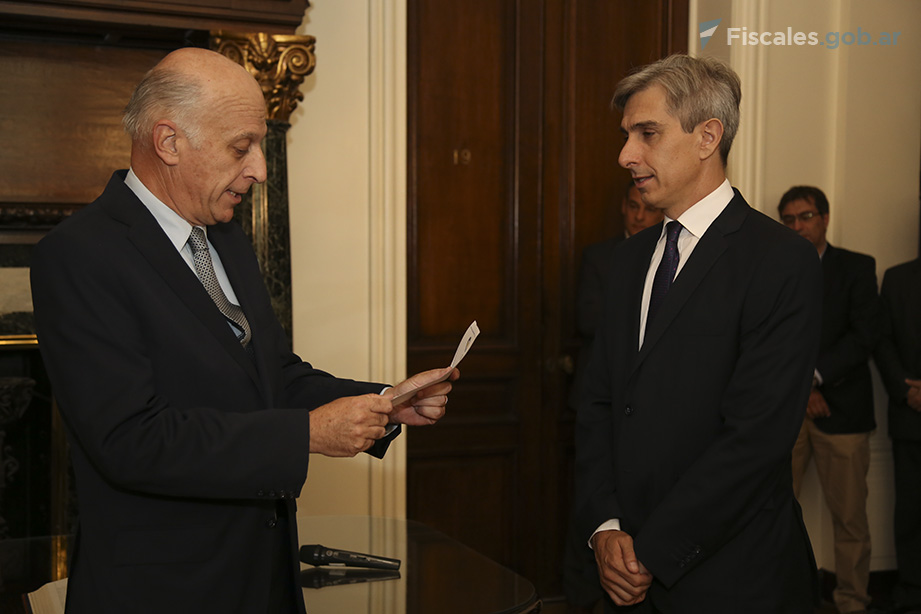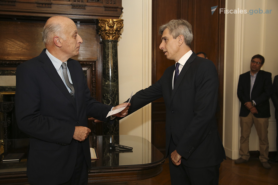 El procurador general interino Eduardo Casal recibió hoy el juramento a un nuevo fiscal. El acto fue realizado en la sede principal de la Procuración General de la Nación en Perón al 600.