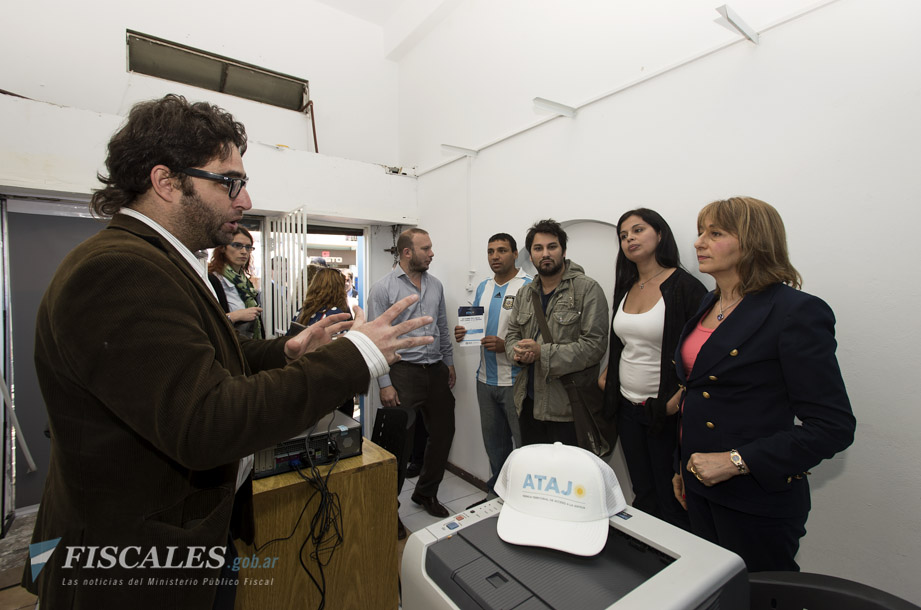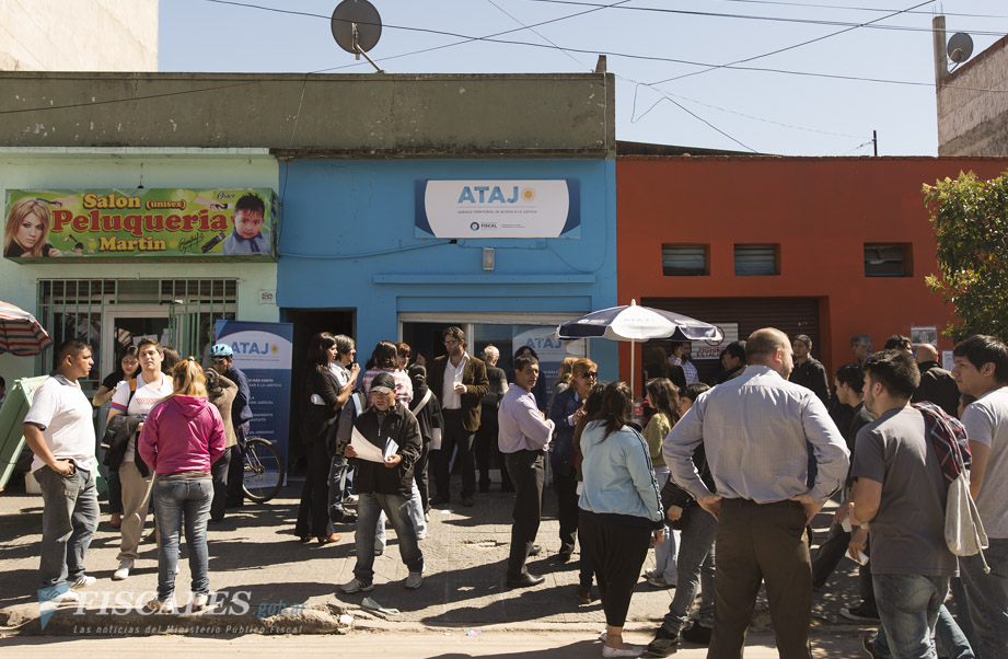 El coordinador del Programa de Acceso a la Justicia cortó la cinta junto a la procuradora General. Julián Axat explicó a Fiscales que aunque el ATAJO abrió sus puertas hoy oficialmente, antes se realizó un exhaustivo trabajo de campo: se hicieron consultas y encuentros con los vecinos y se los acompañó en situaciones que los afectan directamente, como el desalojo del Barrio Papa Francisco y junto a la Procuraduría de Violencia Institucional (Procuvin) participó en una causa a raíz del crimen de dos jóvenes por el que se investiga el accionar de la Policía Federal. Como resultado de esa interacción, se escogió la casa que alberga el ATAJO, “situada estratégicamente” en la calle Batlle y Ordóñez al 5200, que a diario es muy transitada por los ciudadanos que recorren sus comercios y la feria los fines de semana.