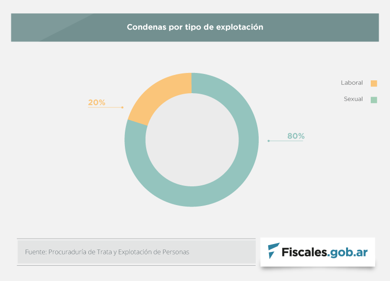 A su vez, señalaron que en 2017 fue el año en que más condenas hubo sobre todo en casos de trata de personas con fines de explotación sexual, representando el 80%, siendo muy dispar sobre las condenas por casos de  trata laboral, equivalente al 20%.