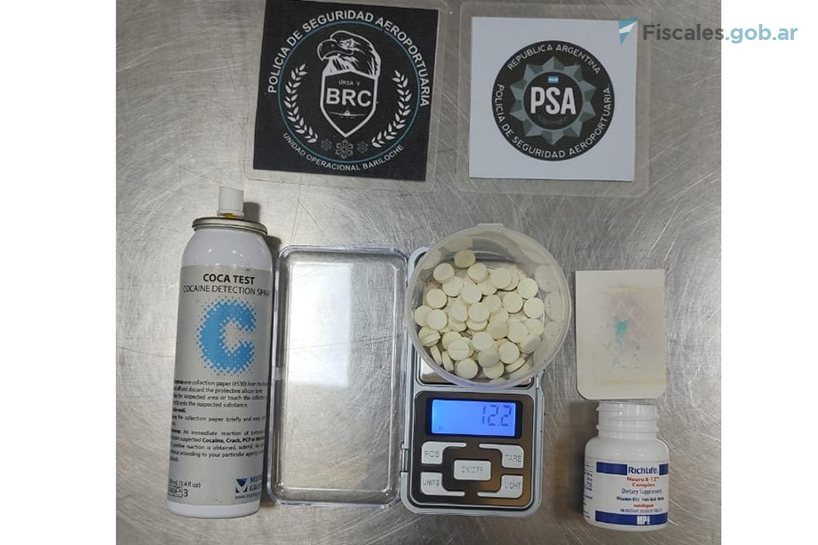 Las pastillas incautadas a algunos detenidos en el aeropuerto de Bariloche dieron positivo a clorhidrato de cocaína con los reactivos orientativos. Foto: Ministerio de Seguridad Nacional