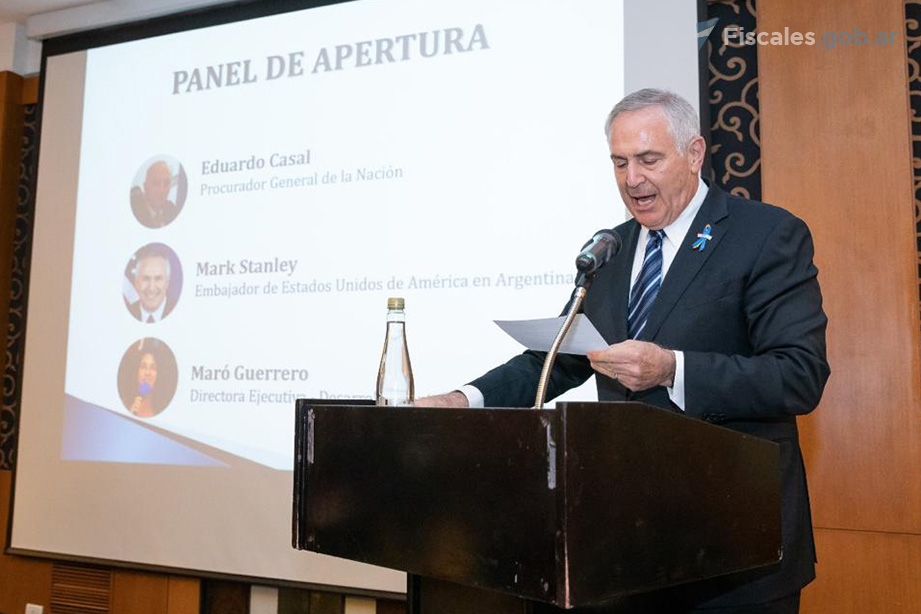 El procurador general de la Nación interino, Eduardo Casal, participó este martes de la jornada "Avances y desafíos en el cálculo de reparación a víctimas de trata de personas. Consolidación del Fondo de Asistencia Directa a Víctimas de Trata". La apertura contó con la presencia del Embajador de los Estados Unidos de América, Mark Stanley.