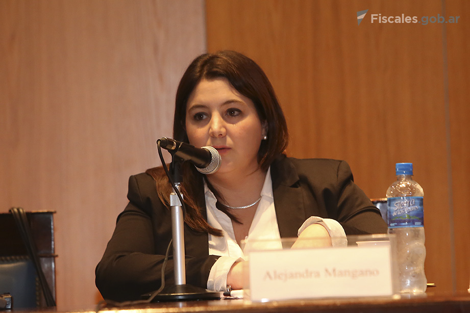 En su presentación, Mángano abordó la problemática del acceso a la justicia de las víctimas del delito de trata de personas. “En Argentina, el 99% de las víctimas de los casos de trata de personas con fines de explotación sexual son mujeres. La ley argentina establece la asistencia integral hasta que se logre la reparación efectiva. De las 2500 víctimas cuyos casos llegaron a juicio oral, sólo una logró convertirse como actor civil”. En ese sentido, describió el caso de Alika Kinan, una víctima de trata de personas que el año pasado se presentó como querellante en el juicio contra sus explotadores.