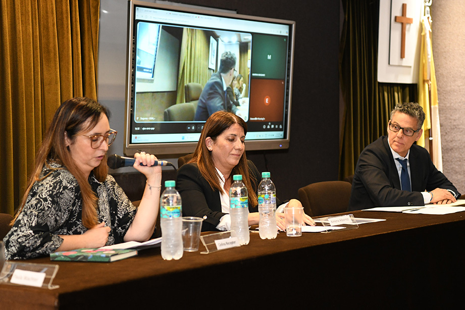 Por su parte, la fiscal Mazzaferri, quien en la Unidad Fiscal Mar del Plata es cotitular del Área de Delitos Complejos y, además, responsable de la oficina de la Procuraduría de Crímenes contra la Humanidad (PROCULESA) de esa ciudad, participó del panel sobre organizaciones coercitivas junto a la docente, investigadora y asesora técnica en la Coordinación Nacional de Rescate y Acompañamiento a Víctimas del Delito de Trata de Personas del Ministerio de Justicia de la Nación, Edith Laura Leiva, y la decana Renault. El panel estuvo moderado por Malena Errico, de la Universidad del Salvador.