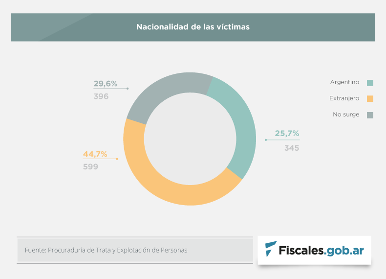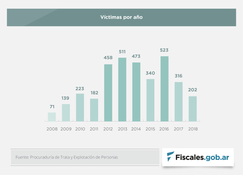 En 232 casos, los imputados fueron condenados por trata, mientras que 40 de ellos obtuvieron veredicto absolutorio y otros 38 fueron sentenciados por delitos conexos. En el 82,3 por ciento de los casos, las víctimas de estos delitos fueron de género femenino y un 17 por ciento masculino, con un 0,7 restante de víctimas trans.