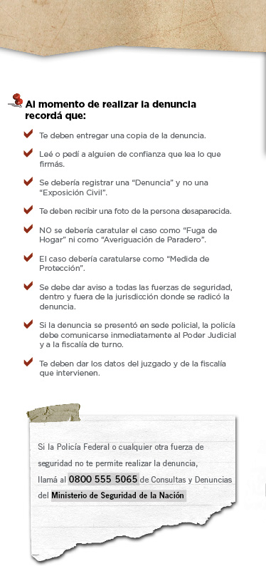- Entregar una foto (están obligados a recibirla) de la persona desaparecida.
