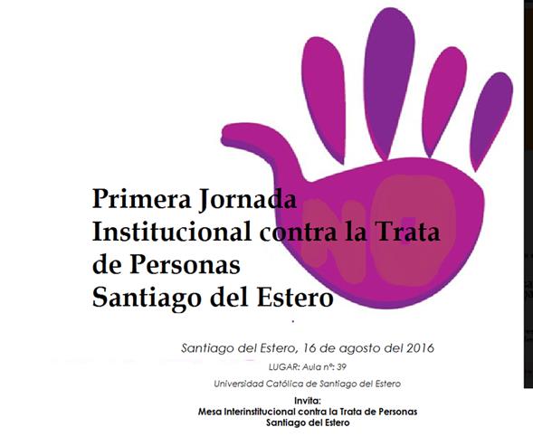 El próximo 16 de agosto se realizará la "Primera Jornada Institucional contra la Trata de Personas" en la provincia de Santiago del Estero. El evento se llevará a cabo a partir de las 9 en la Universidad Católica de la capital provincial y está dirigida a las fuerzas de seguridad, organismos del estado y ONGs vinculados a la temática.