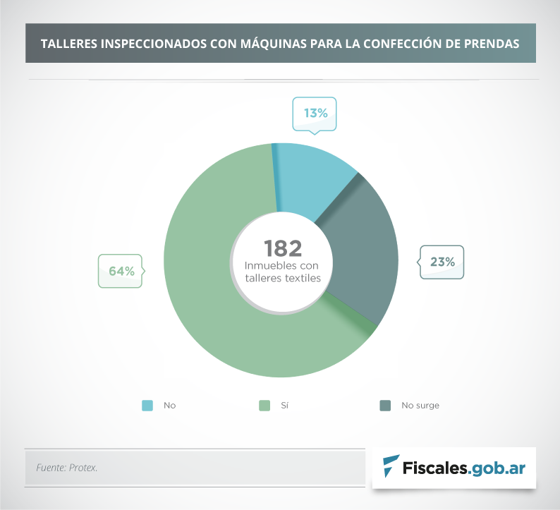 De acuerdo al análisis realizado por la Procuraduría especializada, "el 2,19% cumplía alguna normativa laboral y estaba habilitado para funcionar" y "en el 96% de los inmuebles inspeccionados se pudo determinar que se presentaba alguna ilegalidad". El universo se completa con los talleres familiares, sin trabajadores, "y, por lo tanto, se encontraban ajenos a la legalidad" del informe de la Protex, "más allá de la posible existencia de irregularidades tributarias".