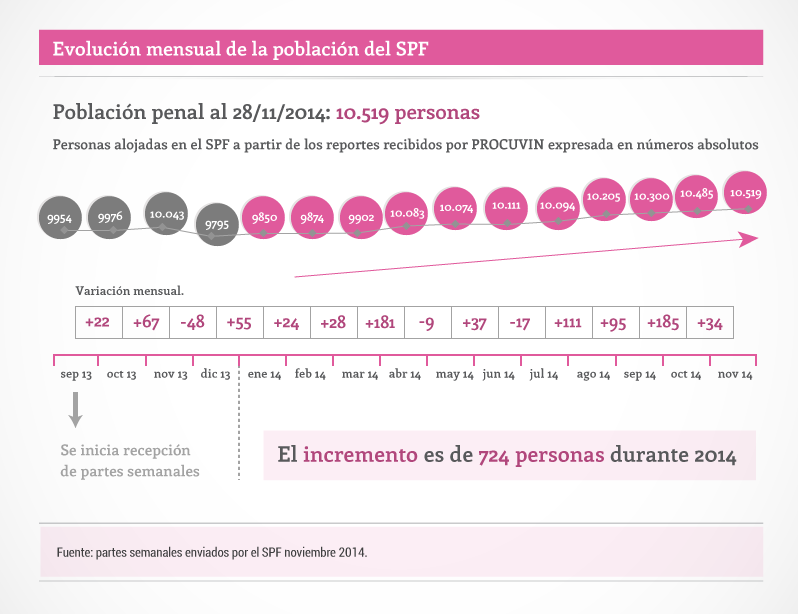 La población alojada en las cárceles federales alcanzó en 2014 su cifra más alta desde los monitoreos de Procuvin