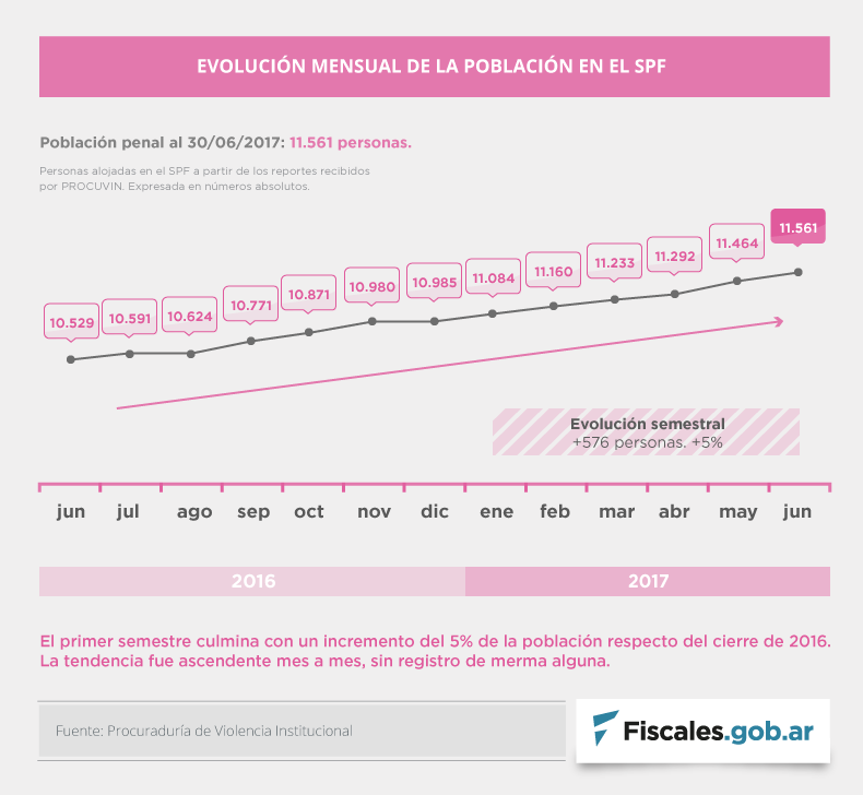 La población alojada en cárceles del SPF creció 5% y alcanza a 11.561 personas
