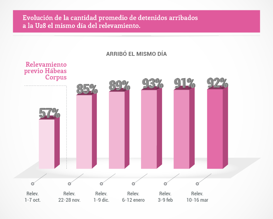 Por otro lado, la Procuvin informó que, con el habeas corpus, se ha logrado bajar al diez por ciento la cantidad de pernoctes en esa unidad carcelaria en abril de 2014. Como resultado, más del 90 por ciento de las personas detenidas que pasan por la Alcaidía de Tribunales -un lugar de tránsito y no de pernocte- no permanece por la noche en esa unidad penal del Servicio Penitenciario Federal (SPF).