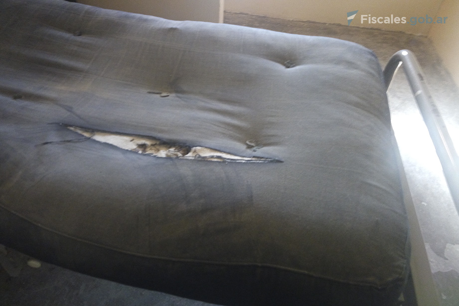 En tanto, en varios colchones "se observó daño o destrucción parcial, con roturas en la funda y dispersión del relleno, manchas y quemaduras". Las camas cuentan con una sábana de "higiene deficiente", que es utilizada como funda del colchón o para cubrirse.