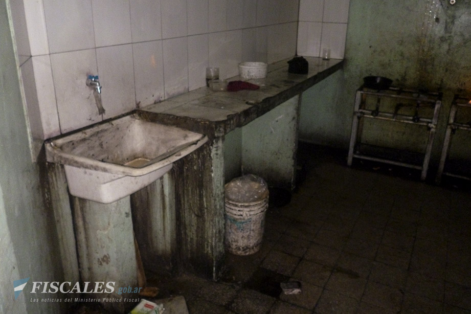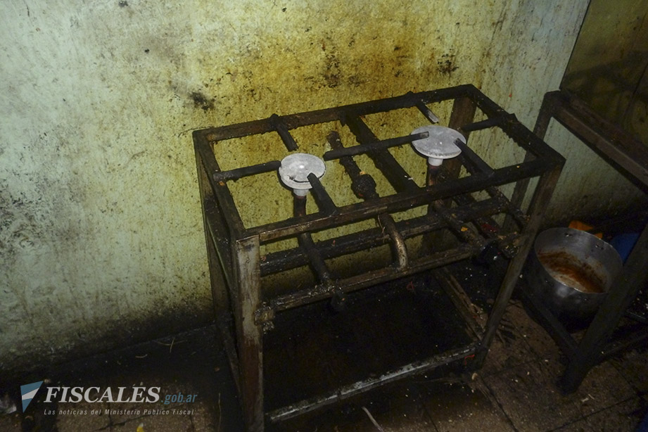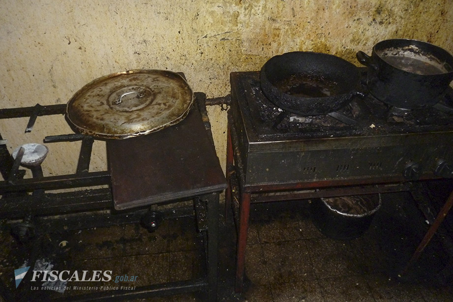 Los fiscales además señalaron la falta de infraestructura en la cocina, donde sólo existen tres artefactos que hacen las veces de hornallas y donde se verifica la falta de utensilios y el mal estado de los pocos con los que se cuentan. El espacio, que carece de heladera, "se encuentra en malas condiciones de limpieza, observándose suciedad y humedad en las paredes y techos" e "infestado de cucarachas".