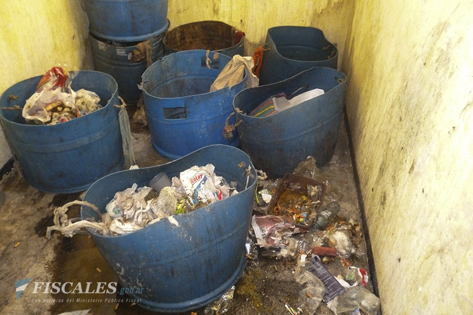 Al cuadro, indicaron, se suma que "la basura no es regularmente retirada del pabellón" y que se la deposita "en una de las celdas, sin puerta". "No se arroja en bolsas sino directamente en unos tachos que además se encuentran rotos, por lo que la basura se filtra. Todo esto conlleva que los residuos se pudran y se reproduzcan hongos, gusanos y cucarachas, así como un olor nauseabundo", precisaron.
