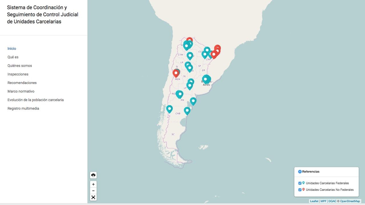El sitio cuenta con un mapa interactivo sobre las inspecciones realizadas en las distintas unidades carcelarias desde la creación del Sistema en 2013, las recomendaciones emitidas, la legislación y un amplio registro multimedia que permite conocer la tarea llevada adelante.